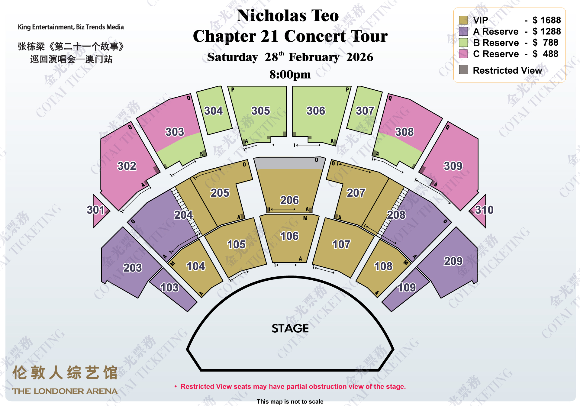 8 tickets per transaction per person. Transactions exceeding the applicable ticket limit may be cancelled without notice by Cotai Ticketing at its discretion. This includes duplicate transactions having the same name, billing address or credit card.