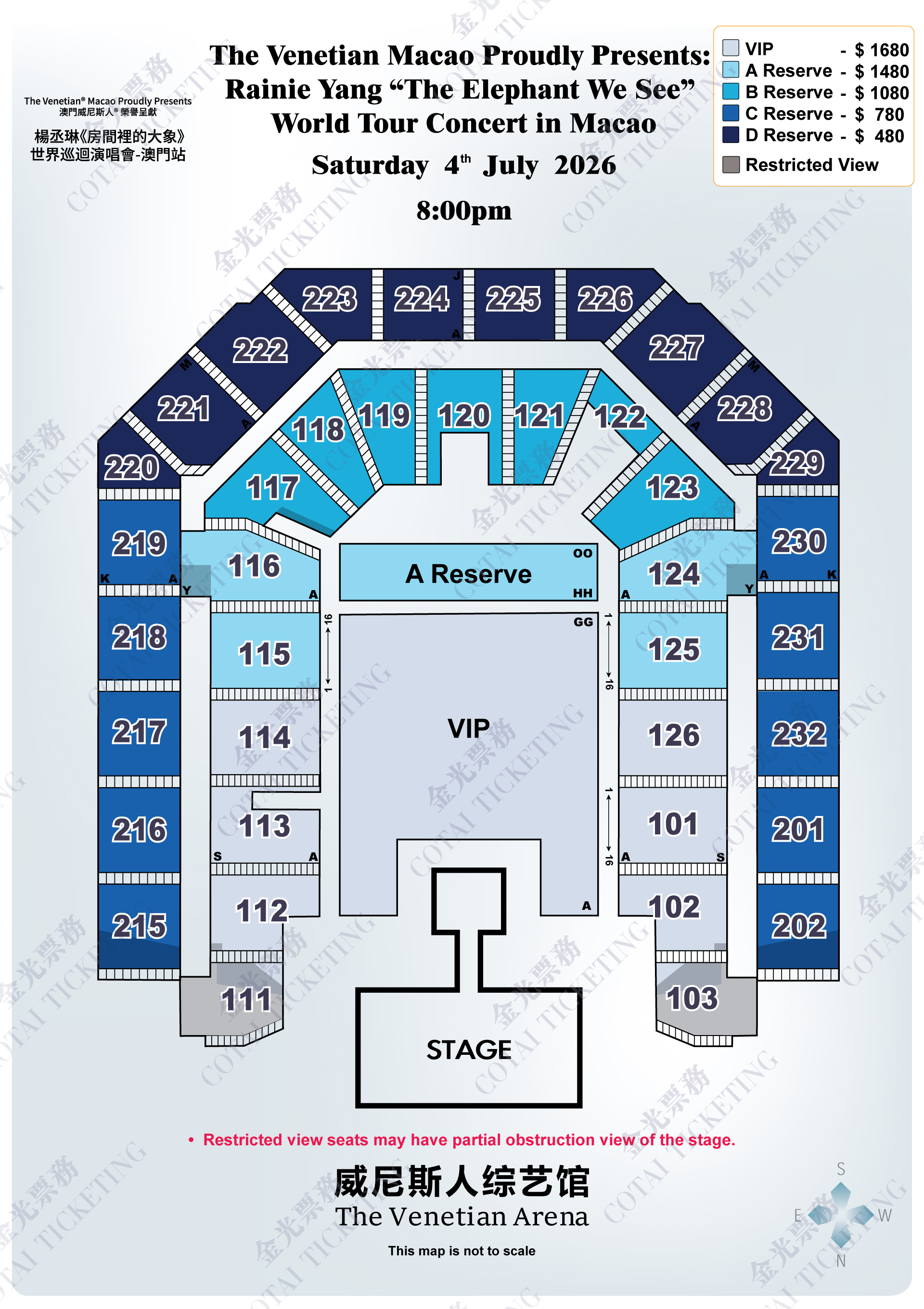 • 按場館規例,所有未满三週歲的嬰孩可容許無票進場,然而嬰孩必須在不佔座位並全程在成人看管的情況下進入場館,否則必須持有有效入場券方可進入場館。